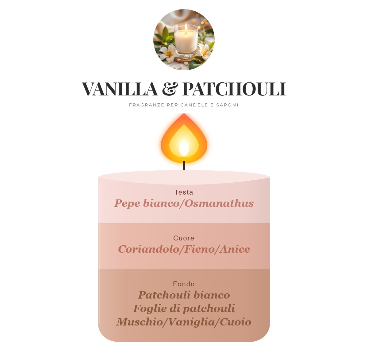 Intensa, sensuale e sofisticata: Vanilla & Patchouli è una fragranza avvolgente che unisce il calore della vaniglia alla profondità elegante del patchouli, creando un profumo ricco e magnetico, perfetto per candele e saponi dal carattere deciso.