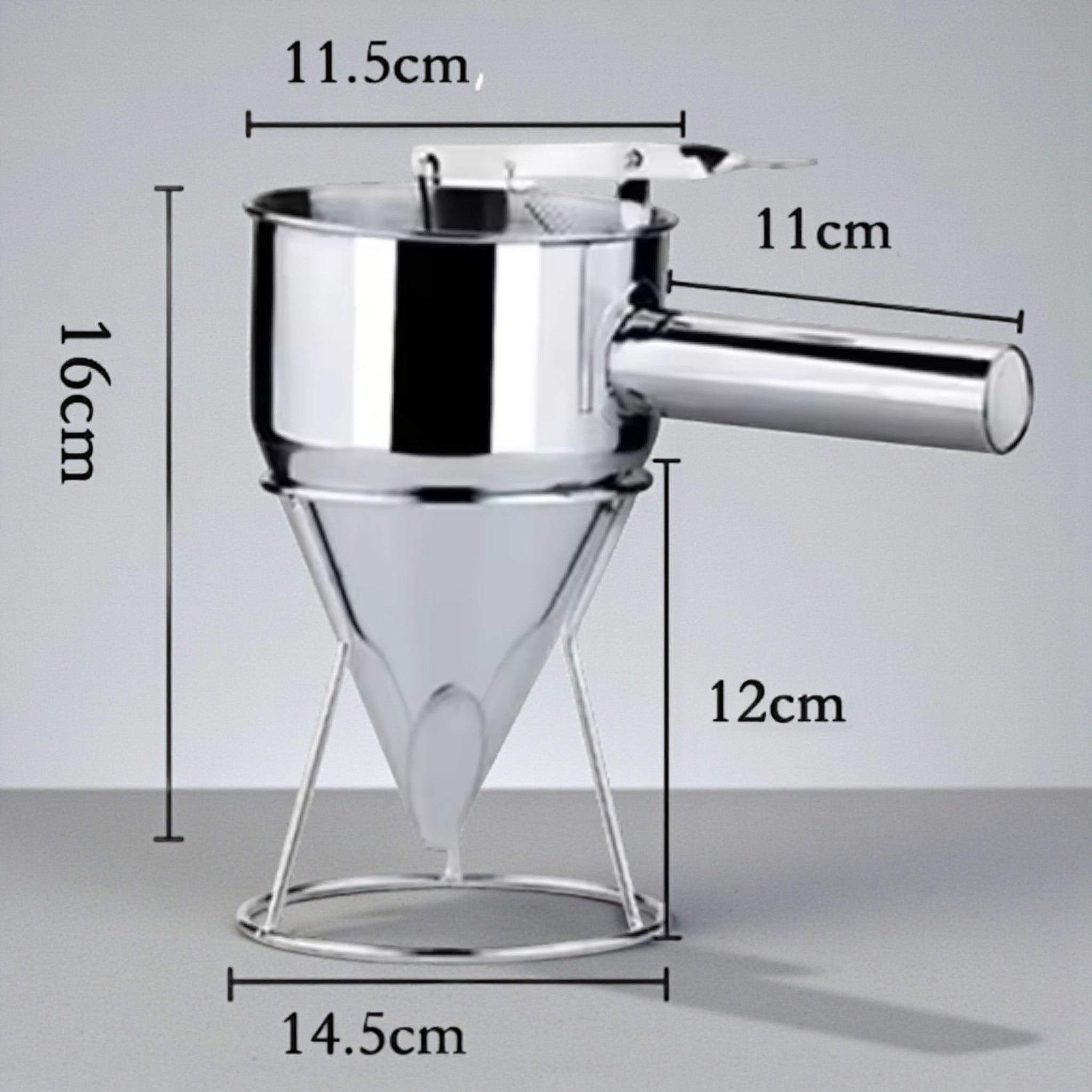 La struttura in acciaio inox garantisce resistenza al calore, durata nel tempo e facilità di pulizia, rendendolo adatto all’uso frequente sia in ambito hobbistico che professionale. Il meccanismo a imbuto permette un flusso uniforme della cera, ideale per riempire stampi e contenitori di diverse dimensioni con la massima precisione.